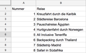 Ein guter Tipp, wie du so beim Urlaubsziel finden mit der Klammer Methode am einfachsten vorgehst: Nutze Google Tabellen , um deine Reiseziele direkt zu ordnen und zu nummerieren.